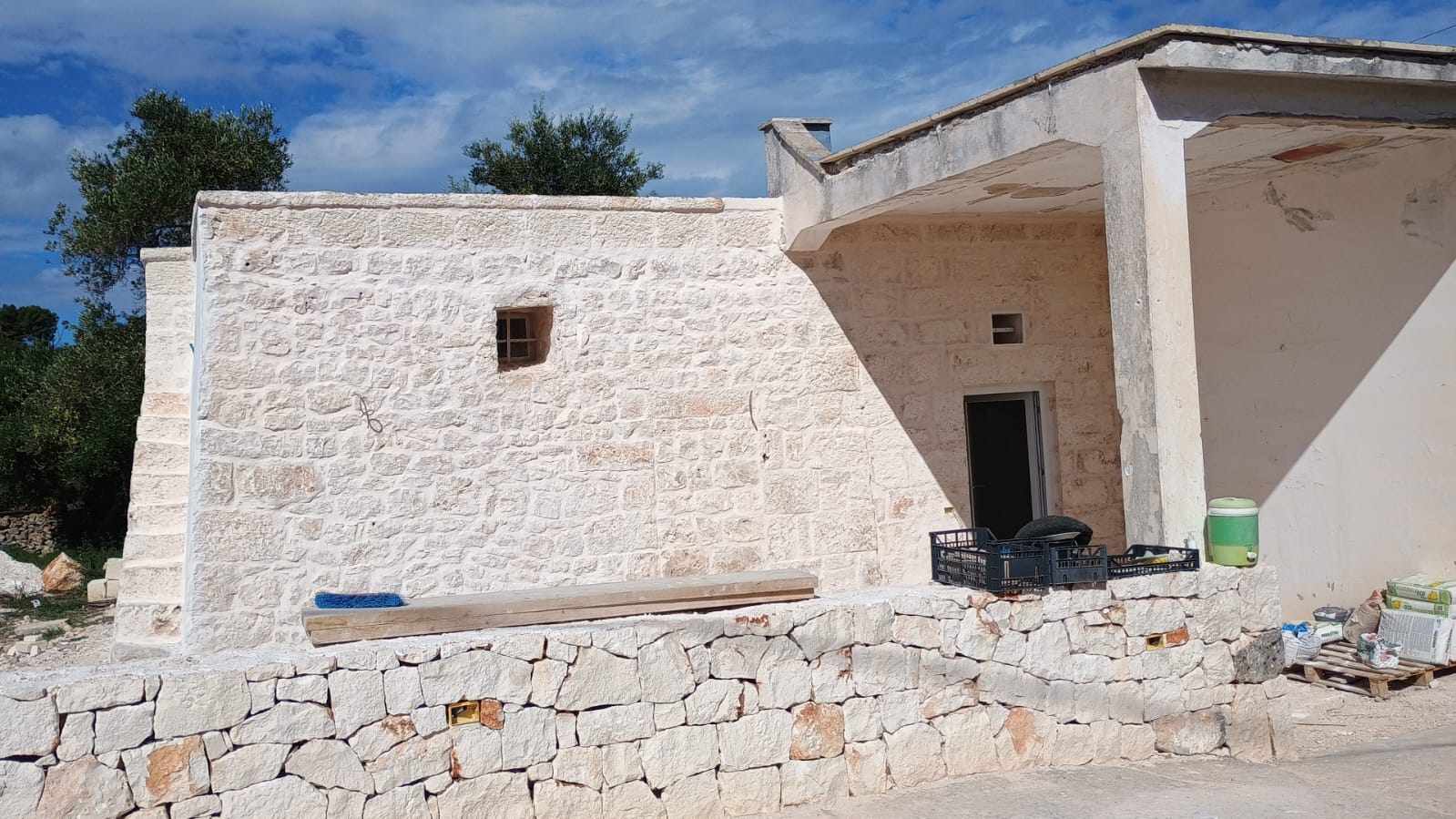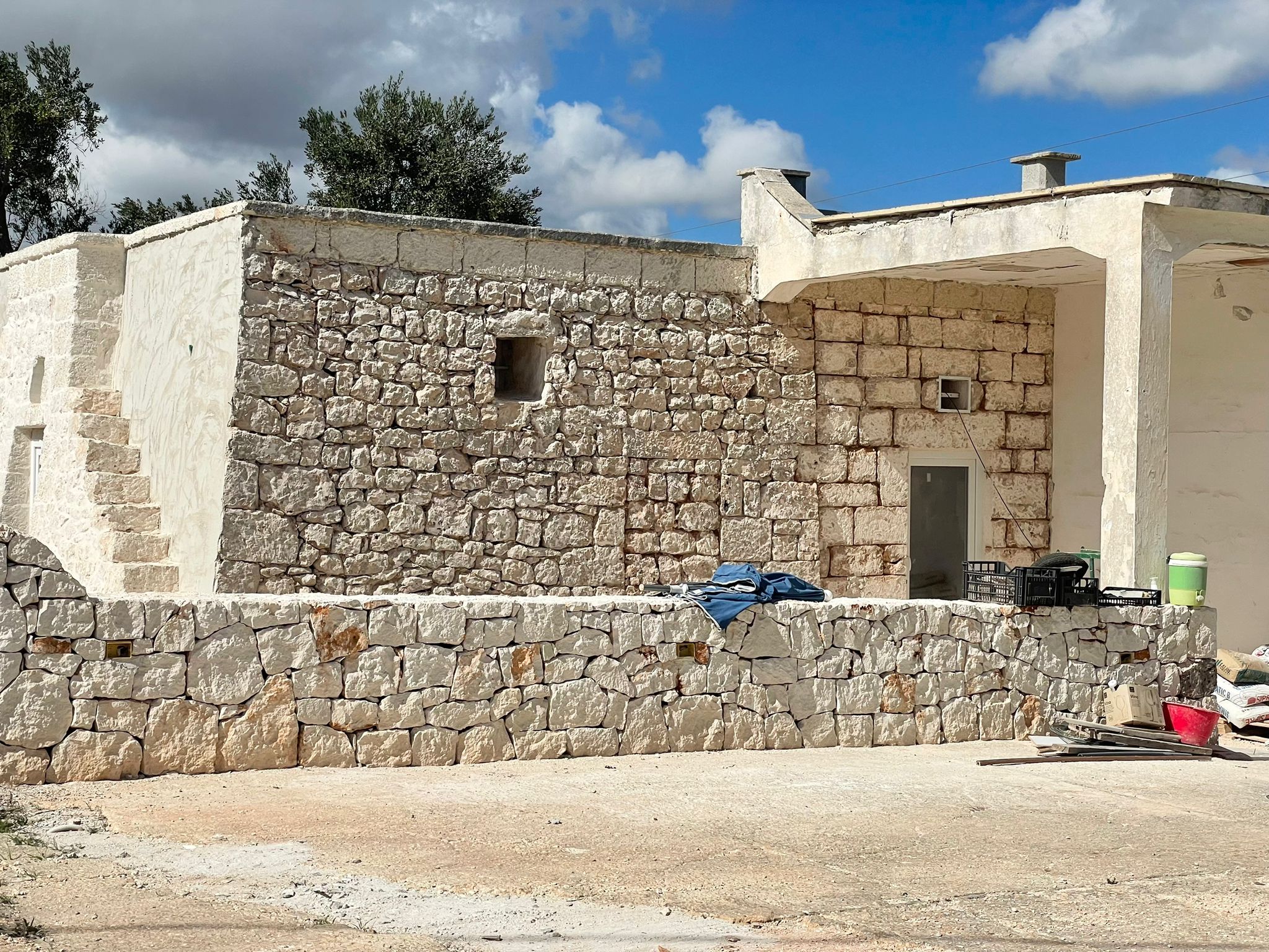 Questa casa è una tipica costruzione in pietra a secco tradizionale pugliese, che si compone di una parte storica “Trullo saraceno” risalente al 1800 e che, a differenza dei trulli conici di Alberobello, è più diffuso nella zona di Ostuni, Carovigno e San Vito dei Normanni.